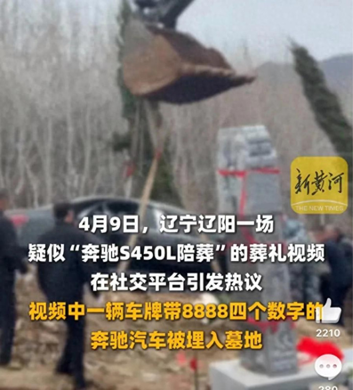 4月9日,辽宁辽阳一场疑似“奔突S450L陪葬”的葬礼视频在酬酢平台激勉热议。网友发布的视频知道,一座刚修好的墓碑掌握,有一辆挖掘机正吊起一辆玄色汽车,世东谈主协力将汽车推入挖好的墓坑。随后,车辆被埋入土中,澳门新浦京游戏app疑似四肢陪葬品埋葬。从另一则视频中不错看到,该车是一辆玄色奔突S450L,米乐app下载车招牌为辽*8888*,车辆顶部盖着红布。报答宴中,疑似一位男性家属发言向世东谈主暗示感谢,并称为现场每位襄助者奉上500元的红包。4月10日,辽阳市民政局别称责任主谈主员告诉新黄河记者,已了解此事,具体情况还在核实中。
