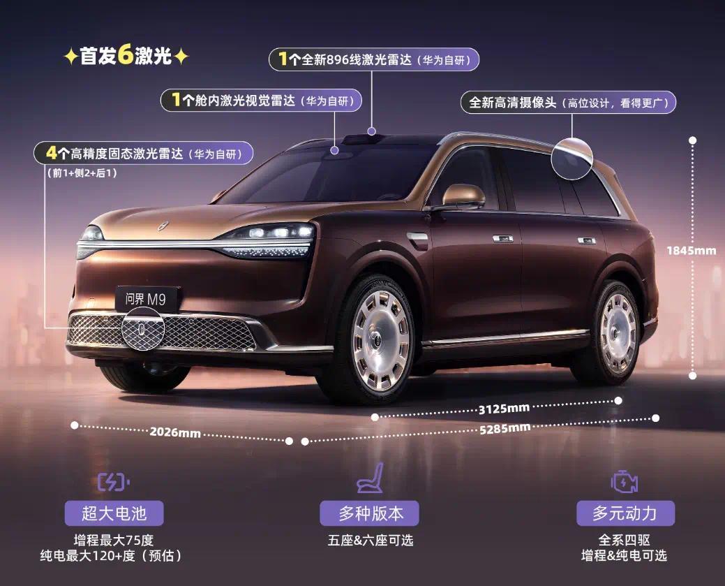 前几天新款理思L8搭载4颗激光雷达,我照旧认为很是历害了,没思到新款问界M9将搭载6颗激光雷达!同期,在尺寸、能源、续航和智能化设立方面还将全面提高,本年刚买的车主,些许有点失意了吧?