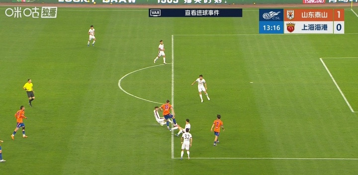 中超6轮焦点战,山东泰山主场1-1上海海港,谢文能进球被吹越位无效。比赛第14分钟,李帅详确失实,随后傅欢铲球,谢文能得球后兜射破门。裁判判罚谢文能越位在先,VAR相通阐明越位进球无效。