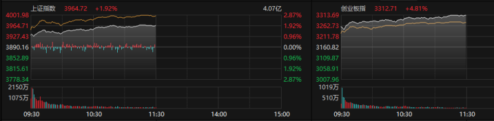 好意思伊暂时和谈成效,阛阓风险偏好权贵回升。4月8日,A股主要指数早盘集体高潮,为止午盘,上证指数涨1.92%,深证成指涨3.87%,创业板指涨4.81%,科创综指涨4.53%。全阛阓成交15525亿元,较上日同期成交额放量4746亿元,全阛阓超5000只个股高潮。
