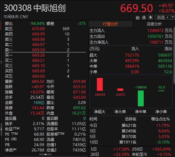 AI产业链8日盘中集体活跃。CPO、PCB等算力硬件股纷纷大涨,中际旭创(300308)盘中创出历史新高,剑桥科技、广合科技等10余股涨停。其中,中际旭创半日成交169亿元,澳门新浦京游戏app位居A股第一。