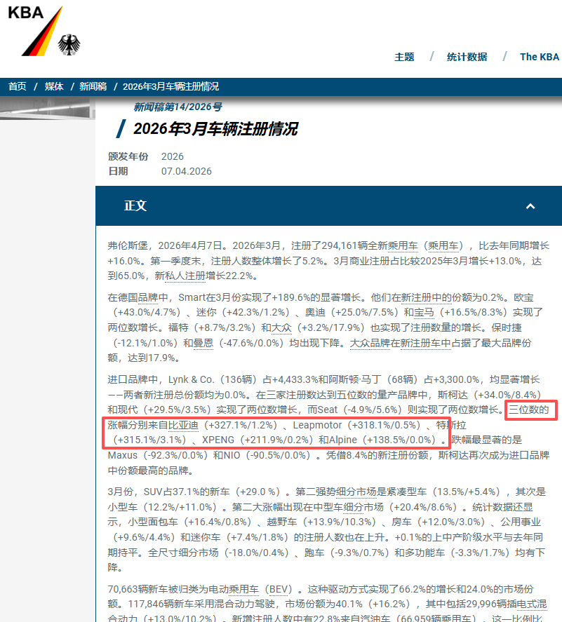 行动汽车发明地的德国,原土电动化的红利正在被中国车企分食,BBA却在全商场节节溃退。