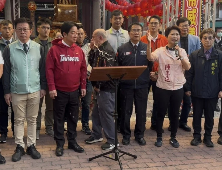 海峡导报详细报谈 台湾地区携带东谈主赖清德18日(大岁首二)一早在台南市长黄伟哲、民进党民代暨台南市长参选东谈主陈亭妃的跟随下,到位于台南的台湾祀典武庙参香、披发福袋。然则在陈亭妃致辞时,武庙林姓主委突形体不适、吐逆,喷溅到赖清德左侧肩膀和衣物,现场步履一度暂停。