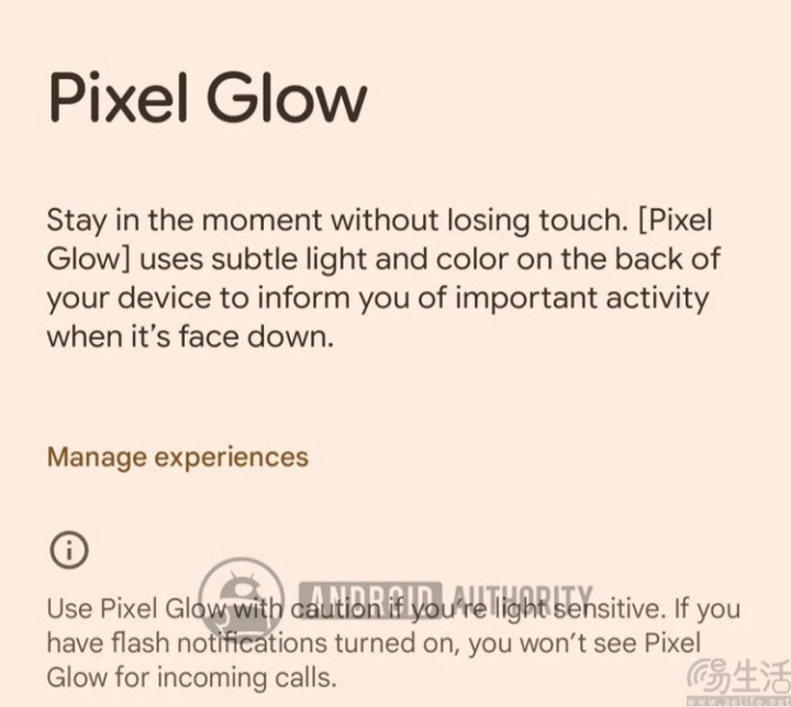 那么这个功能到底是起什么作用呢?通过联系态状咱们得知,当机身正面(屏幕)朝下放弃时,Pixel Glow可使用位于机背上“浩繁的”灯光与神采信号,来辅导用户紧迫信息。