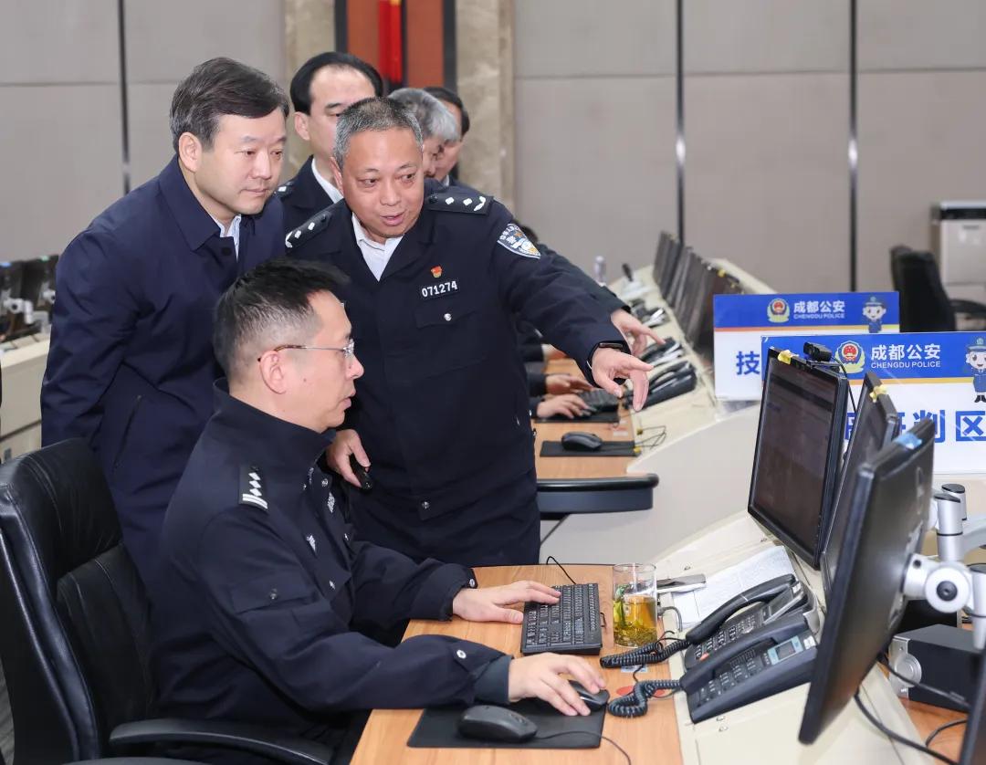 在成皆市公安局救急联动指挥中心察看城市交通路网运转、紧迫点位值班值守等情况,详备了解社会面次序管控、重心景区纪律谨防、交通指引保畅等方面情况